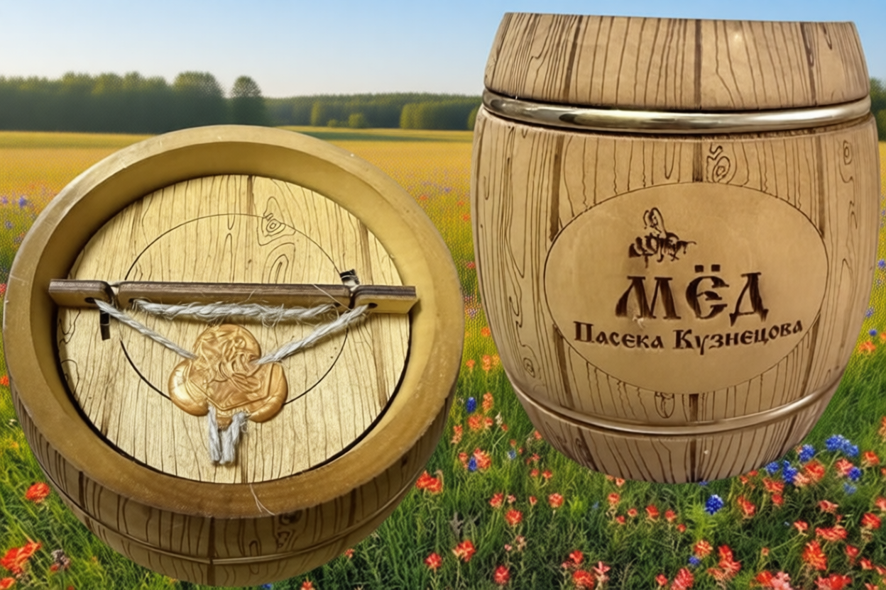 - Идеальные условия для длительного хранения с созревания мёда. Деревянная бочка - исторически проверенная тара для мёда. Она обеспечивает оптимальный воздухообмен ("дышит"), защищает содержимое от света и способствует поддержанию стабильной температуры и влажности. В таких условиях мёд не просто хранится, а продолжает развивать свой вкус и полезные свойства, оставаясь с каждым месяцем только лучше.